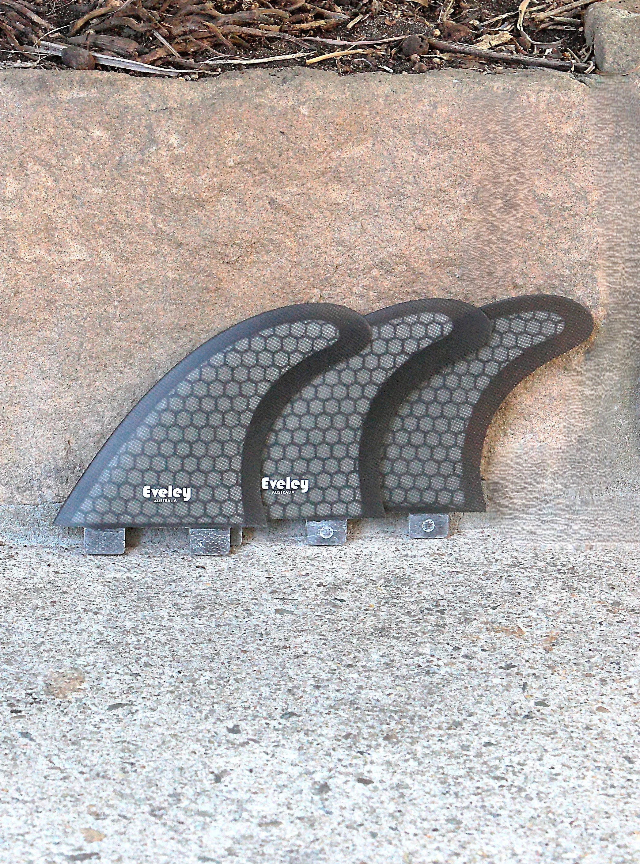 The wide base provides increased drive through turns, making them ideal for high performance surfing. The center fin is smaller than the side fins with a little more rake for increased maneuverability and control.